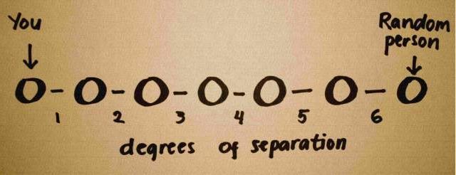 وهذا الشخص العشوائي بالتأكيد يعرف شخصاً، أو لديه علاقة قريبة، سواءً جغرافياً أو مهنياً. ويكمن الربط بالشخص المقصود -بحد أقصى- خمس حلقات وسيطة – ست درجات..