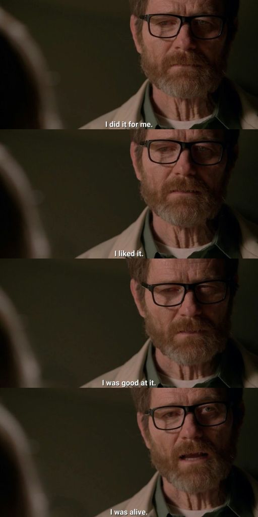 تبنى والتر وايت تجاوز القانون، وأختار الشر، وأدرك أنه يستمتع به.